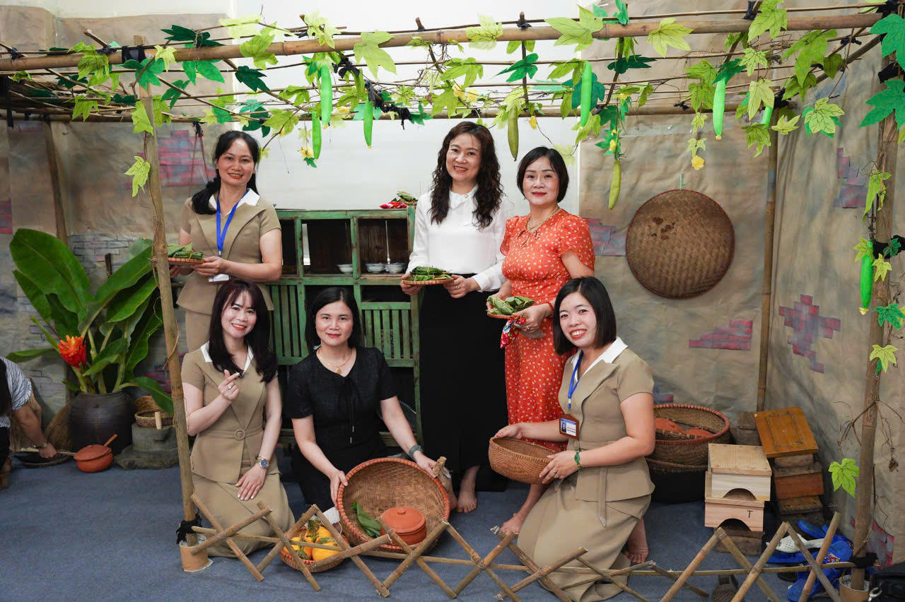 Với chủ đề “Gìn giữ nét quê”, nhà trường đã chuẩn bị một không gian thấm đượm hồn làng quê Bắc Bộ xưa: từ cổng trường tre mộc mạc, sân đình thu nhỏ, góc bếp rơm rạ, đến tiếng ve hè, mùi khói bếp, tiếng muôi chạm nồi gợi nhớ… Các tiết dạy và hoạt động trải nghiệm đều được lồng ghép khéo léo những yếu tố văn hóa truyền thống: chiếu bóng, trò chơi dân gian, bữa cơm quê đầm ấm… Không gian ấy không chỉ là sự tái hiện ký ức, mà còn là một hình thức giáo dục đầy nhân văn, giúp trẻ thơ hôm nay hiểu hơn về những giá trị xưa giản dị mà sâu sắc, bình dị mà lắng đọng.