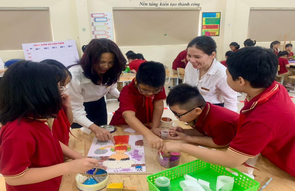 Nhà trường cũng đặc biệt khuyến khích giáo viên trẻ phát huy năng lực sáng tạo thông qua các tiết dạy chuyên đề, mô hình giáo dục STEM và các hoạt động trải nghiệm thực tiễn. Bên cạnh đó, Trường còn tạo điều kiện cho giáo viên tham gia các khóa học nâng cao trình độ chuyên môn. Đồng thời cũng thường xuyên tổ chức các buổi sinh hoạt chuyên môn theo hướng nghiên cứu bài học, giúp giáo viên trao đổi kinh nghiệm, nâng cao kỹ năng giảng dạy và áp dụng hiệu quả các phương pháp giáo dục mới, tích hợp các phương pháp dạy học hiện đại.
