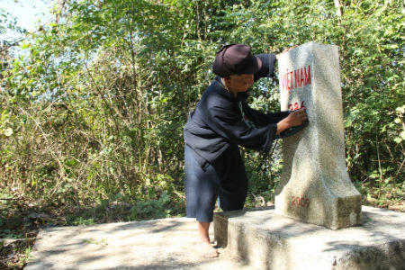 Vừa kiểm tra cột mốc, già Xiết vừa nói: “Ngày trước người dân mình chưa hiểu ý nghĩa và tầm quan trọng của cột mốc nên không có ý thức bảo vệ, có một số kẻ xấu còn làm sứt mẻ và hư hỏng cột mốc. Những lúc như thế già buồn lắm, buồn vì chẳng thể làm được gì, rồi nhặt từng mảnh vỡ gói lại cẩn thận mang về Đồn giao lại cho cán bộ biên phòng”.