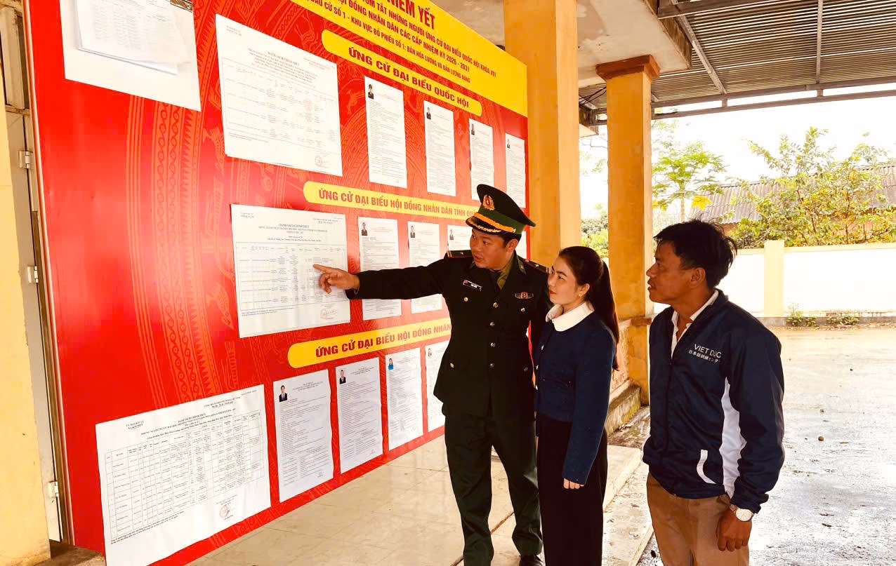 Trong những nếp nhà sàn đơn sơ giữa đại ngàn Trường Sơn, Già làng - người có uy tín Đinh Kim cùng cán bộ tổ Biên phòng cắm bản kiên trì “đi từng ngõ, gõ từng nhà”. Không chỉ thông tin về thời gian, địa điểm bỏ phiếu, các cán bộ còn giải thích cặn kẽ quyền và nghĩa vụ của cử tri, giúp bà con hiểu rõ ý nghĩa của việc lựa chọn đại biểu đại diện cho ý chí, nguyện vọng của Nhân dân.