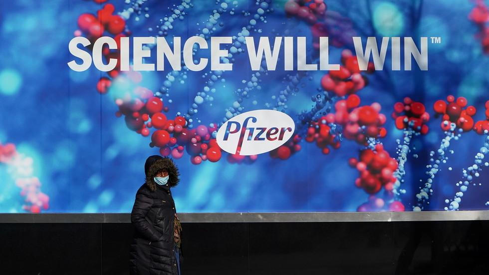 Biển quảng cáo bên ngoài trụ sở của Pfizer ở Manhattan, thành phố New York (Mỹ). Ảnh: Reuters |