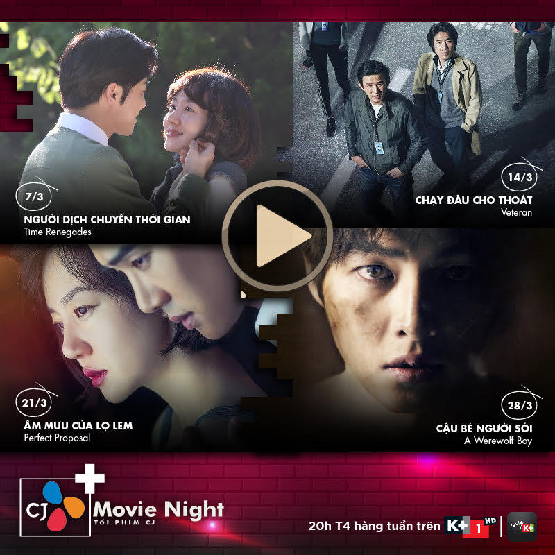 Ngoài ra, không phụ lòng mong mỏi của khán giả, K+ sẽ tiếp tục mang đến những tác phẩm điện ảnh thuộc top các bộ phim ăn khách và đứng đầu doanh thu phòng vé tại xứ kim chi như Người dịch chuyển thời gian (Time Renegades), Chạy đâu cho thoát (Veteran) và Cậu bé người sói (A Werewolf Boy). Với những tín đồ của thể loại hành động, ly kỳ thì Thứ 6 bom tấn sẽ là loạt phim đáng mong chờ cho mỗi tối cuối tuần với các tựa như Chuyện gì xảy ra với thứ hai (What Happened To Monday), Ác nữ báo thù (The Villainess) và John Wick.