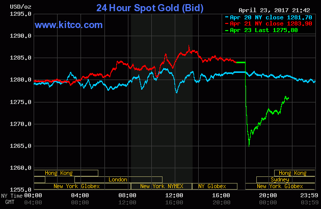 Hiện nhà đầu tư đang theo dõi sát sao kết quả vòng đầu tiên của cuộc bầu cử Tổng thống Pháp. Bất ổn thị trường toàn cầu thường có lợi cho tài sản ít rủi ro như vàng.
