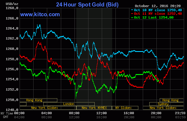 Sáng nay, 7h, theo giờ Việt Nam, giá vàng giao ngay trên sàn Kitco đứng tại 1.254USD/oz, tăng 0,13% so với chốt phiên trước.