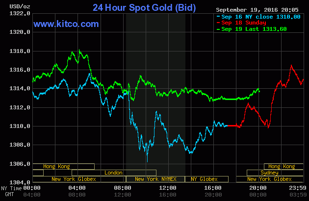 Sáng nay 7:00 theo giờ Việt Nam, giá vàng giao ngay trên sàn Kitco đứng tại 1.313,6USD/oz, tăng 0,3% so với chốt phiên trước. Trong tuần này, cả Fed và Ngân hàng Trung ương Nhật Bản sẽ họp chính sách. Hai ngân hàng có xu hướng phân kỳ trong quyết sách tiền tệ.