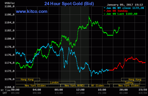 Sáng nay 7:00 theo giờ Việt Nam, giá vàng giao ngay trên sàn Kitco đứng tại 1.182,6USD/oz, tăng 0,89% so với chốt phiên trước.