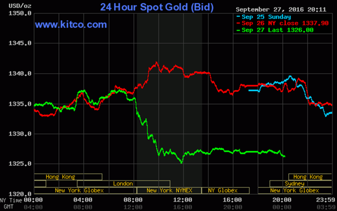 Sáng nay 7:00 theo giờ Việt Nam, giá vàng giao ngay trên sàn Kitco đứng tại 1.326USD/oz, giảm 0,9% so với chốt phiên trước.