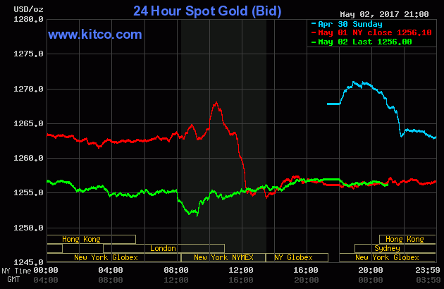 Trên sàn Comex của Sở giao dịch hàng hóa New York, giá vàng kỳ hạn giao tháng 6 tăng 0,17% đạt mức 1.257,70 USD/oucne. Các hợp đồng vàng tương lai tìm thấy ngưỡng hỗ trợ ở mức 1.248,20 USD/oucne, thấp nhất kể từ 10/4 và mức kháng cự tại 1.272,40 USD/oucne.