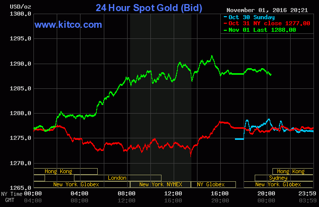 Sáng nay 7:00 theo giờ Việt Nam, giá vàng giao ngay trên sàn Kitco đứng tại 1.288USD/oz, tăng 0,9% so với chốt phiên trước.