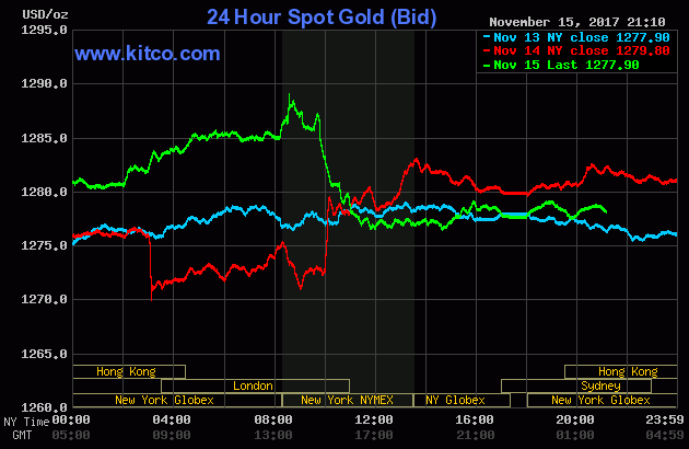 Đầu phiên hôm nay 16/11 (giờ Việt Nam), trên sàn Kitco, giá vàng thế giới giao dịch ở mức 1.277,6 – 1.278,6 USD/ounce.