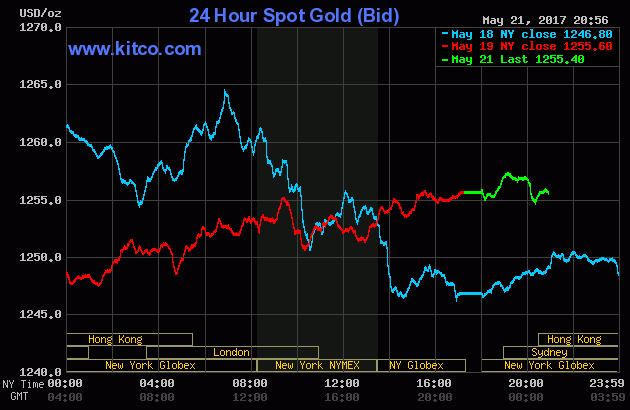 Giá vàng trên sàn New York chốt phiên giao dịch tuần qua ở mức 1.256,60 USD/ounce, trong khi đó trên thị trường châu Á, giá vàng niêm yết tại sàn Thượng Hải là 1.265,60 USD/ounce.