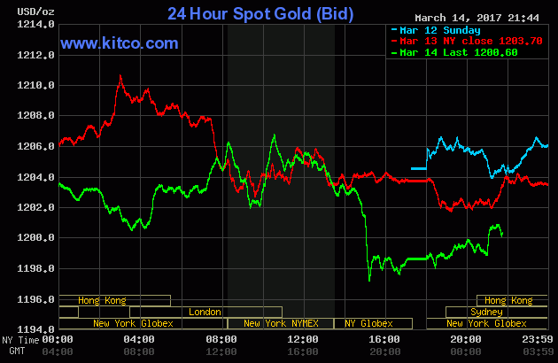 Giá vàng giao ngay trên sàn Kitco được giao dịch ở ngưỡng 1.200,6 USD/oz, giảm 3,1 USD, tương đương 0,26% so với phiên trước. Quy đổi theo tỷ giá tại Vietcombank, hiện giá vàng trong nước đang đắt hơn thế giới 3,32 triệu đồng/lượng, mở rộng thêm 40 nghìn đồng so với phiên trước.