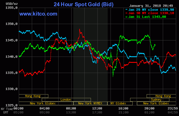 Cụ thể giá vàng giao ngay trên sàn Kitco đang được niêm yết ở mức 1.343 USD/oz, tăng 4,9 USD, tương đương 0,37% so với chốt phiên trước.