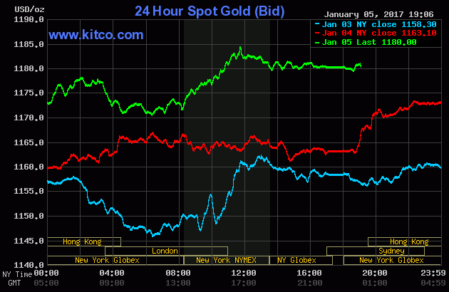 Sáng nay 7:00 theo giờ Việt Nam, giá vàng giao ngay trên sàn Kitco đứng tại 1.180USD/oz, tăng 1,45% so với chốt phiên trước.