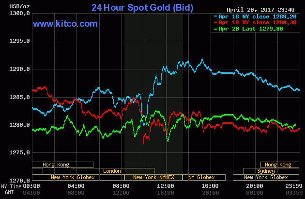 Theo tin tức mới cập nhật trên thị trường vàng thế giới, đầu giờ sáng nay theo giờ Việt Nam, giá vàng thế giới giao ngay đứng ở mức 1.278,3 USD/ounce. Giá vàng giao kỳ hạn tháng 6 trên sàn Comex New York giảm 2,4 USD xuống 1.28 USD/ounce.