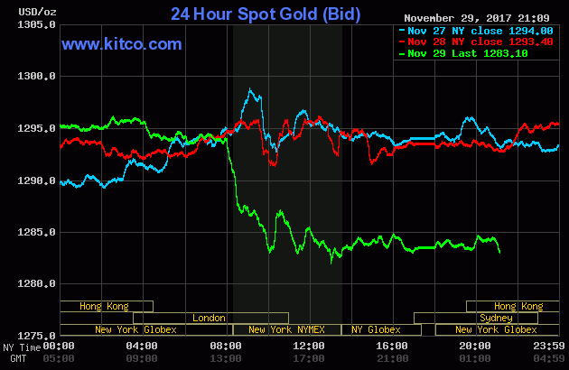 Theo đó, giá vàng giao tháng 2 giảm 13 USD, tương đương 1%, xuống 1.286,20 USD/ounce – mức thấp nhất kể từ 21/11.