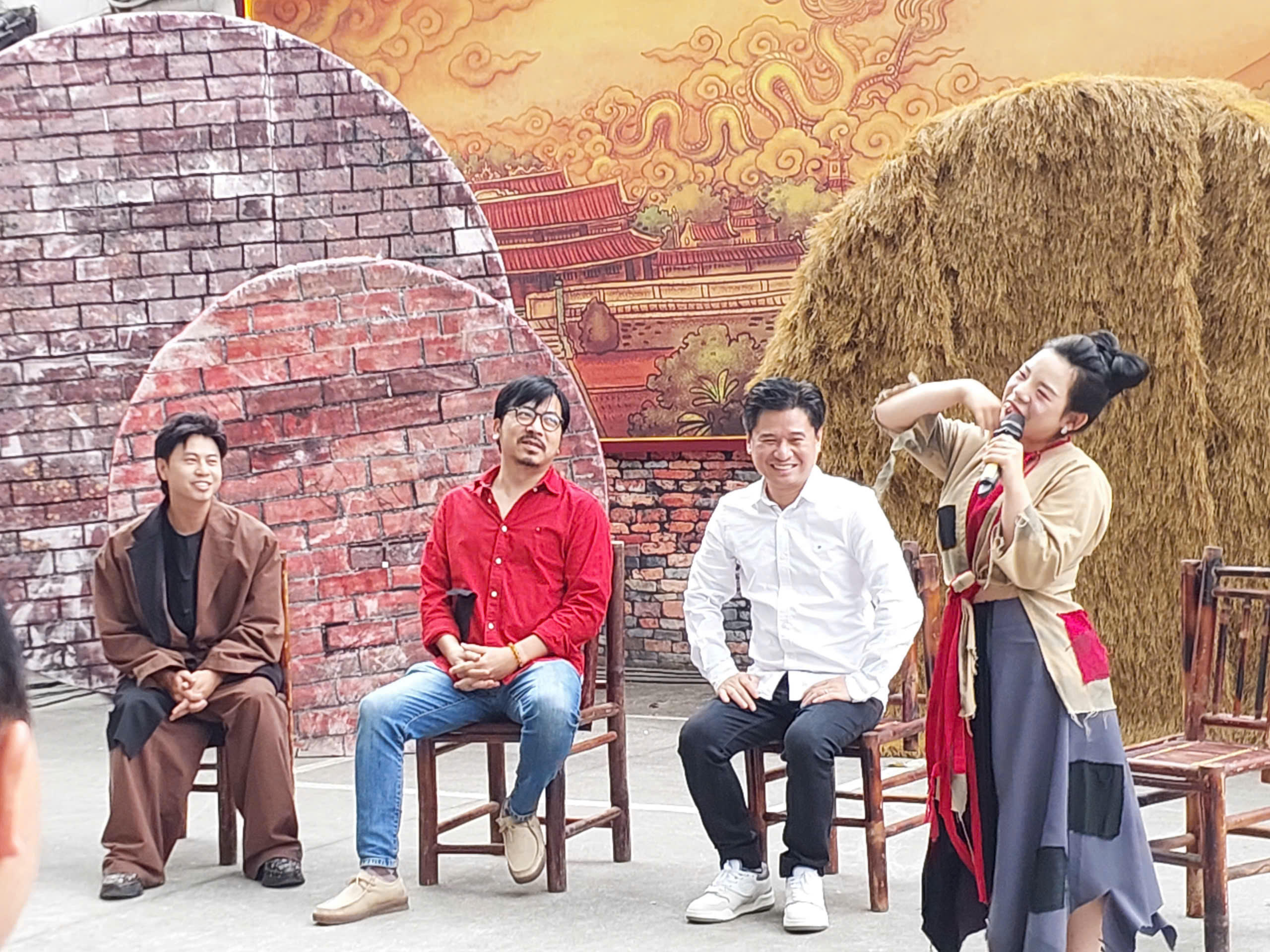 Nhạc sĩ Dương Cầm, Nhà biên kịch Đinh Tiến Dũng, NSND Tấn Minh và giọng ca Hoàng Thái Phương tại buổi họp báo ra mắt vở nhạc kịch "Giấc mơ Chí Phèo". (Ảnh: Thùy Dương) |