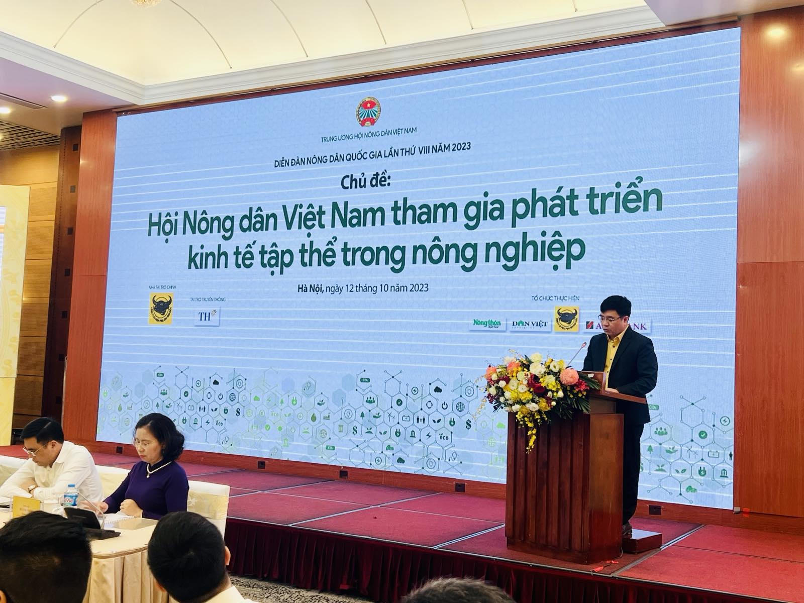 | Ông Trần Khánh - Giám đốc Khối KHDN, Ngân hàng TMCP Bắc Á trình bày tham luận tại Diễn đàn Nông dân Quốc gia |