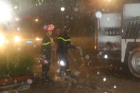 Đám cháy xảy ra ngay trong đêm mưa bão số 2 di chuyển vào đất liền, mưa to, gió giật mạnh nên công tác cứu nạn, cứu hộ gặp rất nhiều khó khăn.