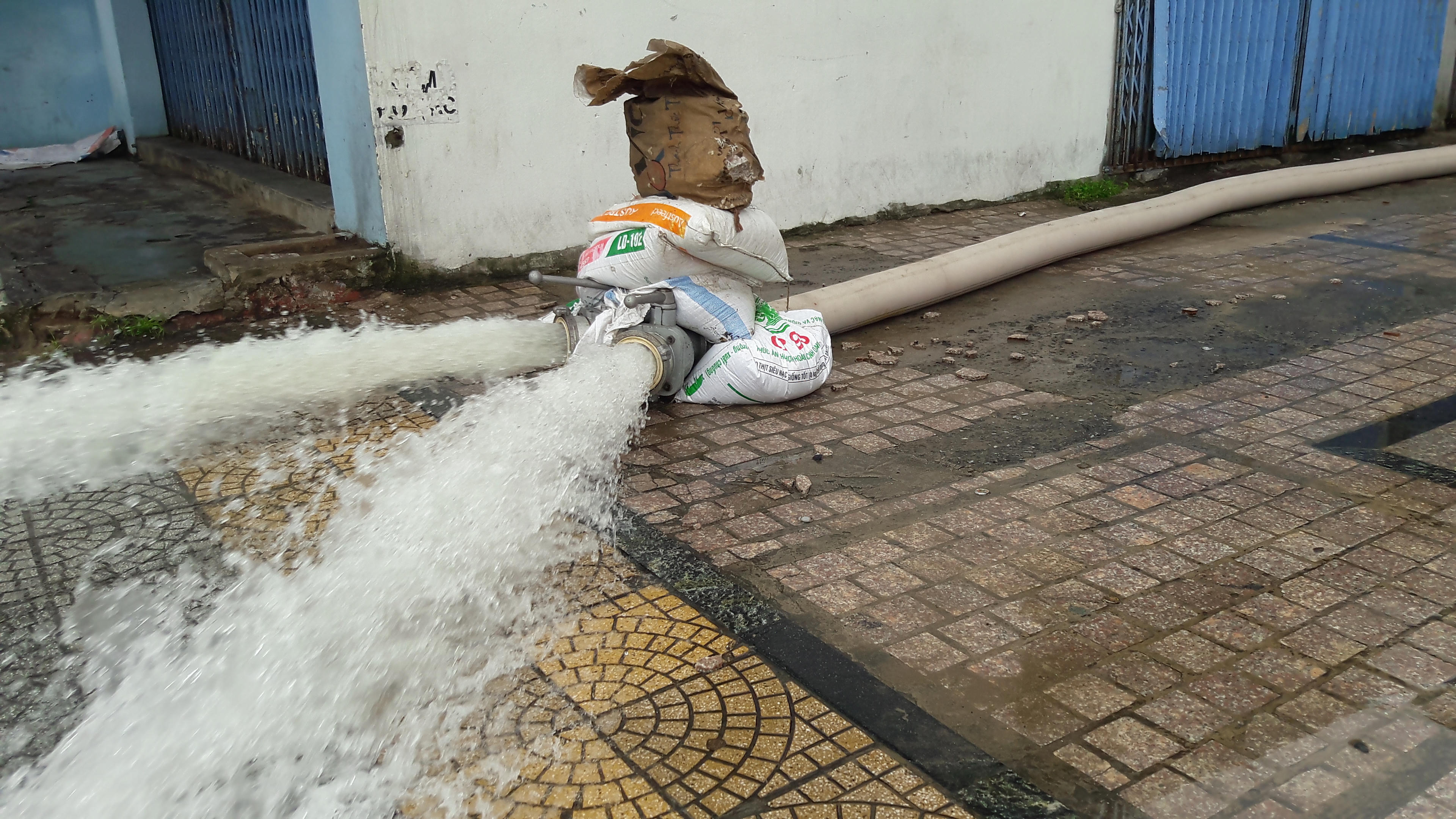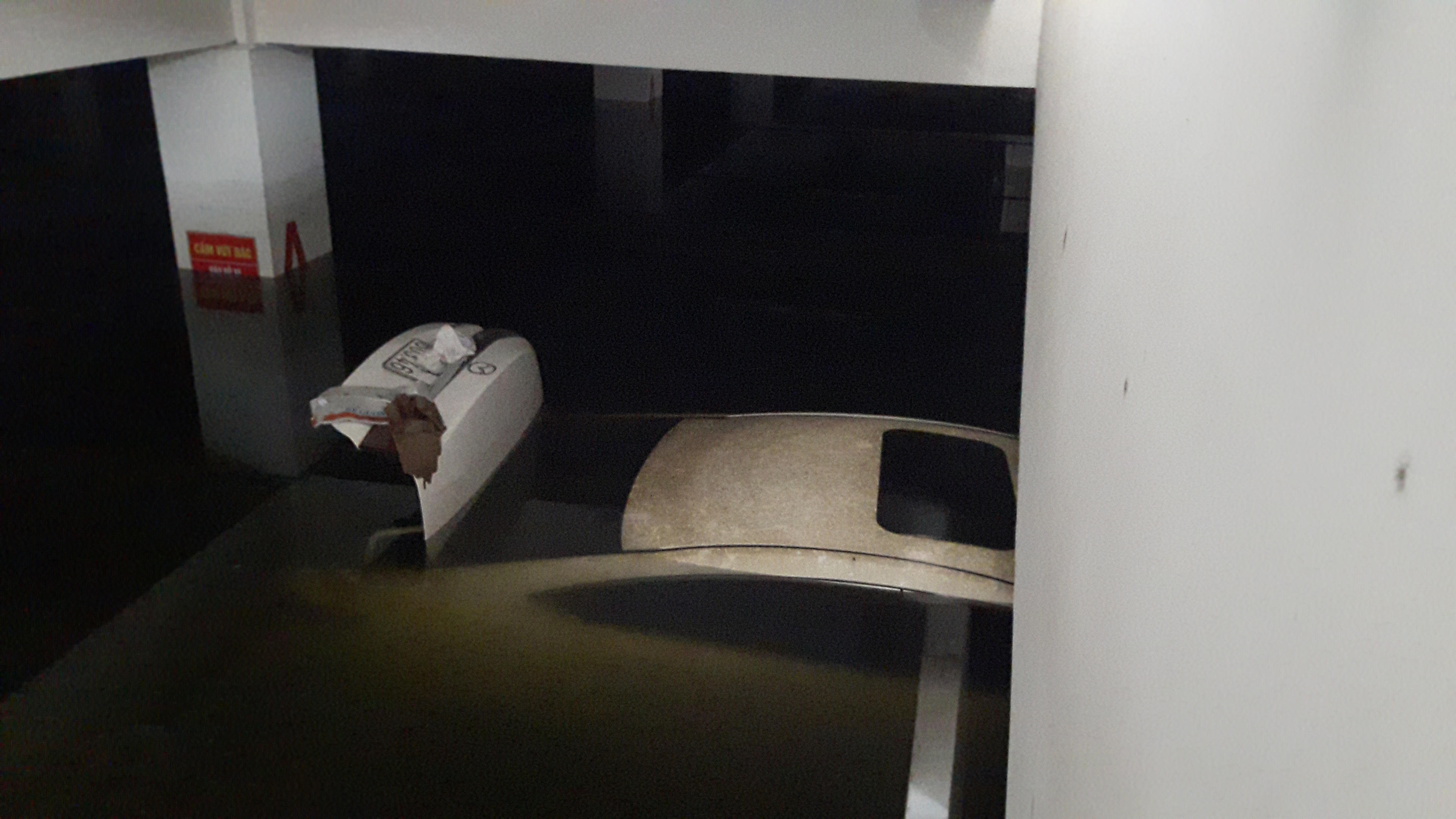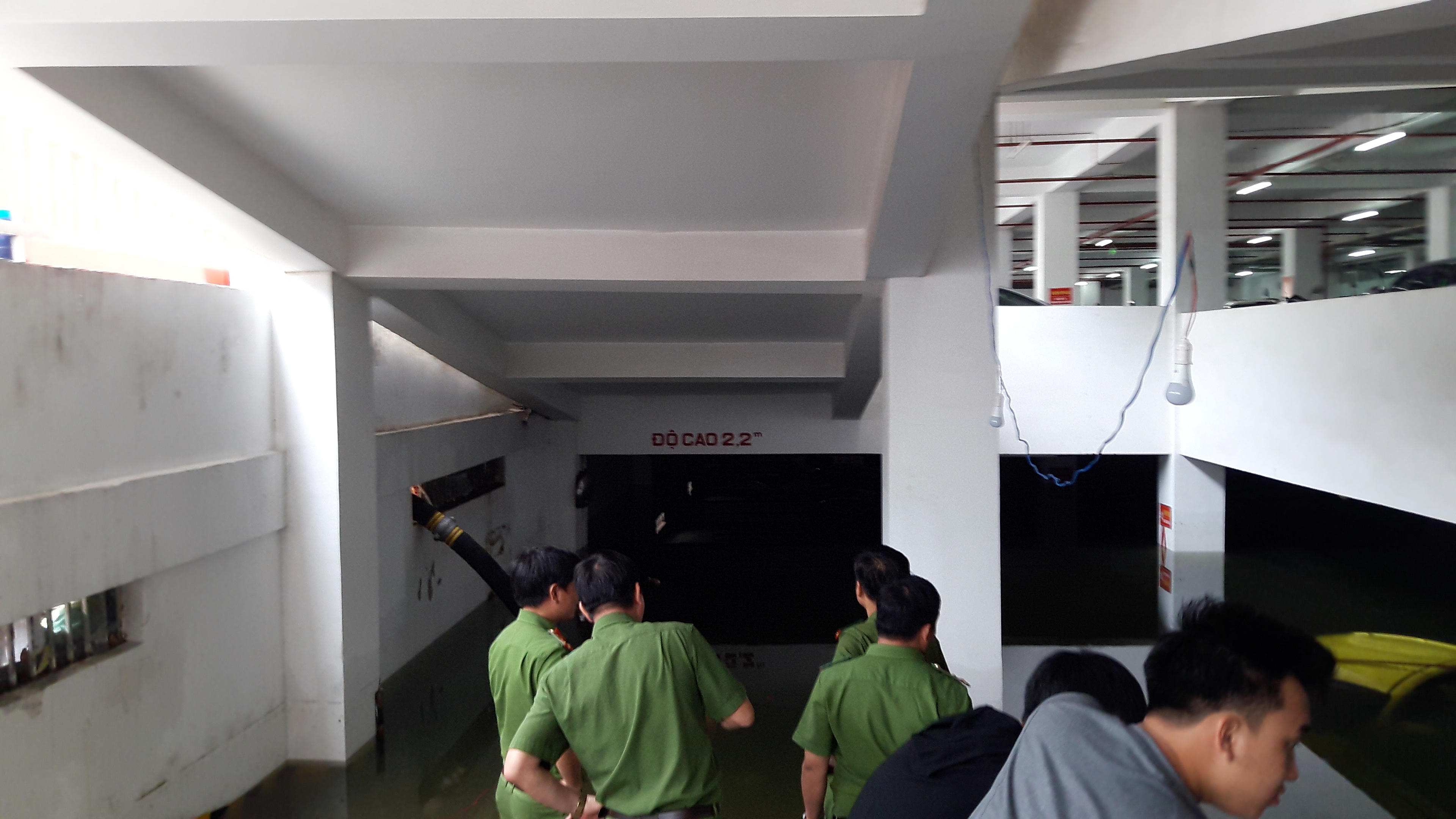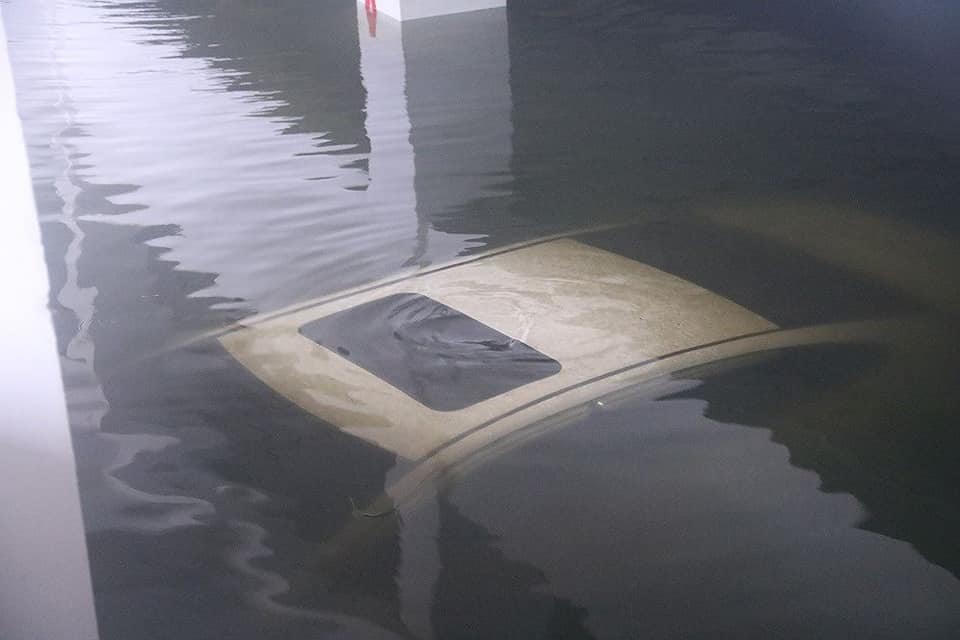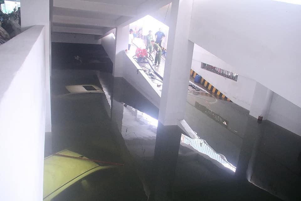 Hình ảnh hút nước để "giải cứu" xe bị chìm trong hầm chung cư:
