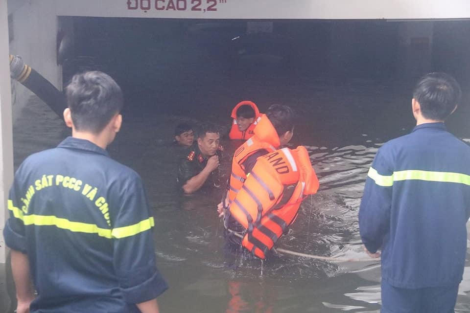 'Giải cứu' ôtô, xe máy ngập trong hầm chung cư Đà Nẵng