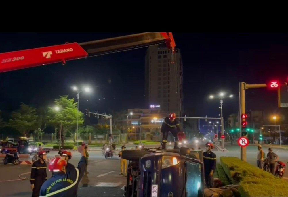 Khoảng 4h hôm nay, 4/10, nhận tin báo có 1 vụ tai nạn xe tải bị lật tại nút giao đường Bạch Đằng lên cầu Rồng, Phòng Cảnh sát Phòng cháy chữa cháy và Cứu hộ cứu nạn (Công an TP Đà Nẵng) lập tức điều động xe cứu nạn cứu hộ của đến hiện trường.