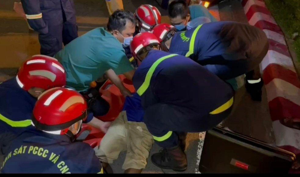 Sau khoảng 10 phút, lực lượng chức năng đã cứu thành công tài xế bị nạn ra ngoài an toàn và bàn giao cho lực lượng y tế 115. Đồng thời, lực lượng y tế cũng tiến hành test nhanh COVID-19 cho nạn nhân để đảm bảo an toàn phòng chống dịch cho các lực lượng tham gia cứu nạn.