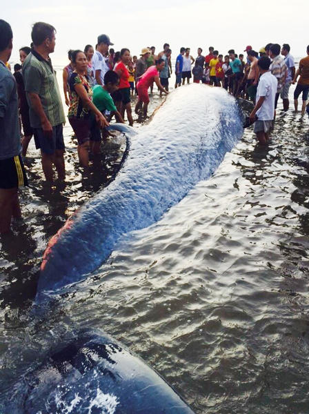 Thời điểm cứu hộ con cá voi sức khỏe rất kém, cá thở thoi thóp, trong khi đó hàng ngàn người đang tiếp sức cho cá voi. Ba chiếc máy múc được huy động tích cực đào rãnh thông ra biển. Nhiều người khác vây quanh cá, xối nước liên tục lên lưng và đầu để đả bảo cá không bị khô da.