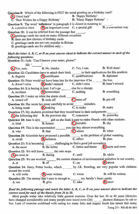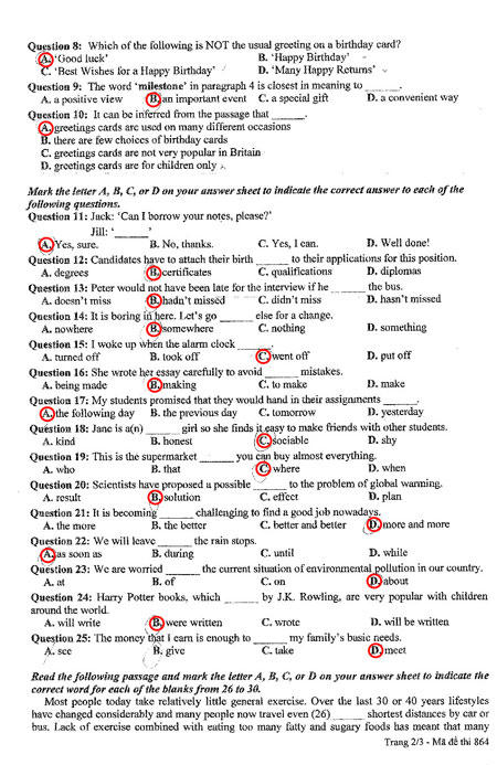 Giải đề thi tốt nghiệp THPT môn Tiếng Anh 2014