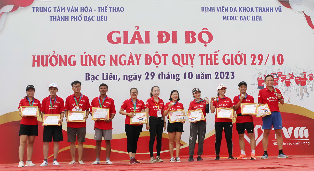 (PLVN) - Nhằm nâng cao ý thức của cộng đồng về việc chủ động kiểm soát và phòng tránh nguy cơ đột quỵ, ngày 29/10, Bệnh viện Đa khoa Thanh Vũ Medic Bạc Liêu phối hợp với Trung tâm Văn hóa - Thể thao TP Bạc Liêu tổ chức Giải đi bộ hưởng ứng Ngày Đột quỵ Thế giới.