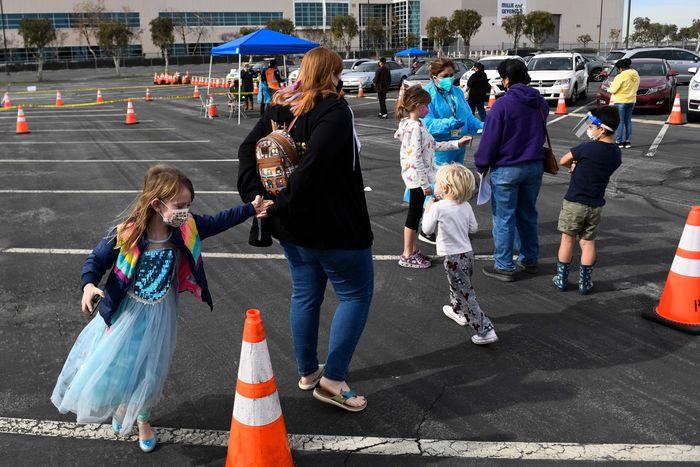Trẻ em theo cha mẹ đi xét nghiệm COVID-19 tại California, Mỹ, hồi tháng 1/2022. Ảnh: Getty Images