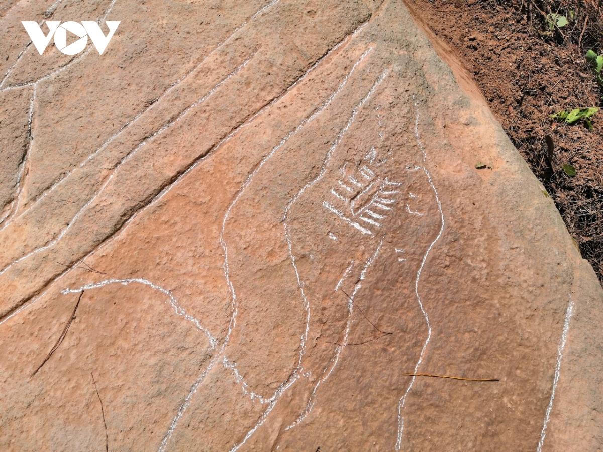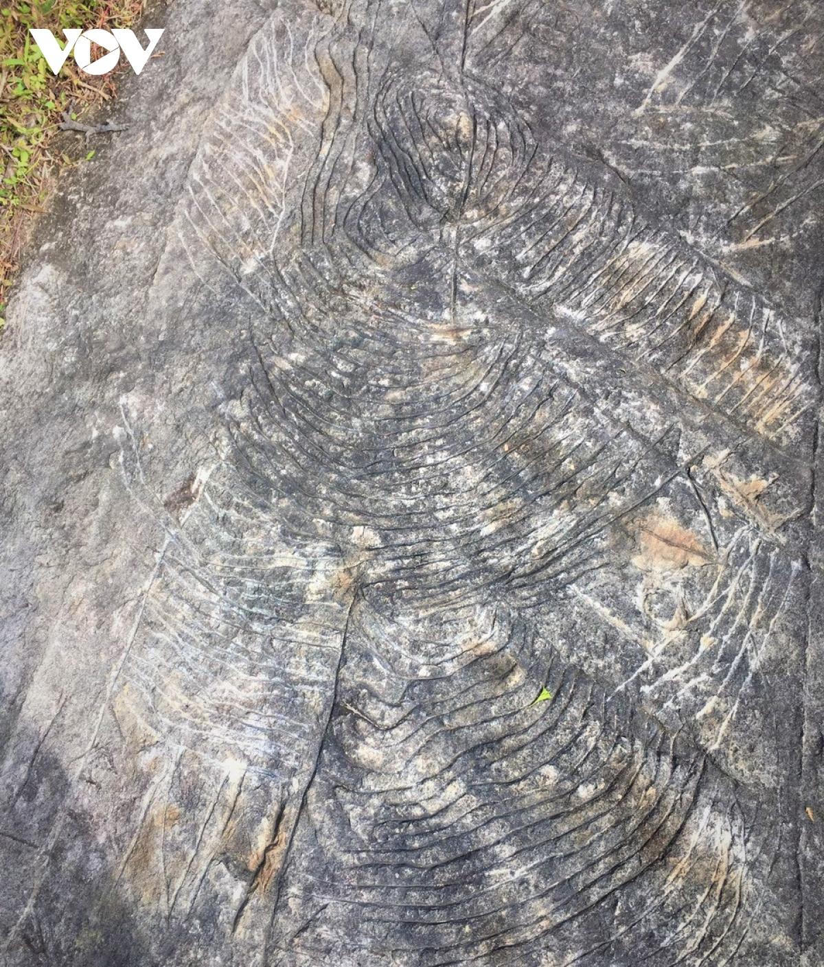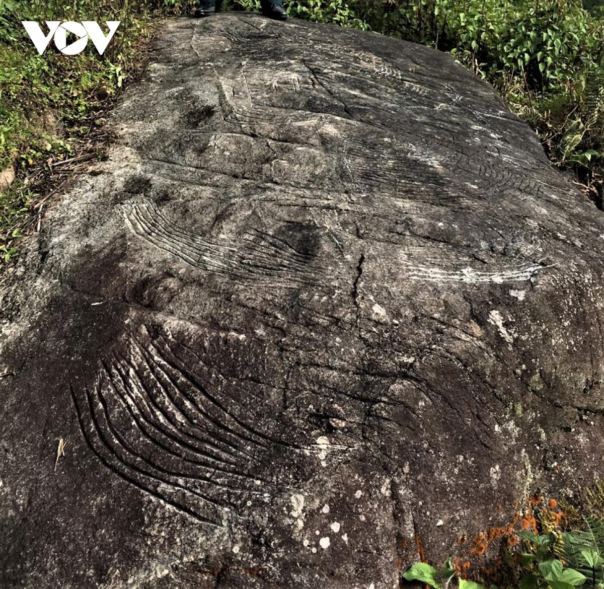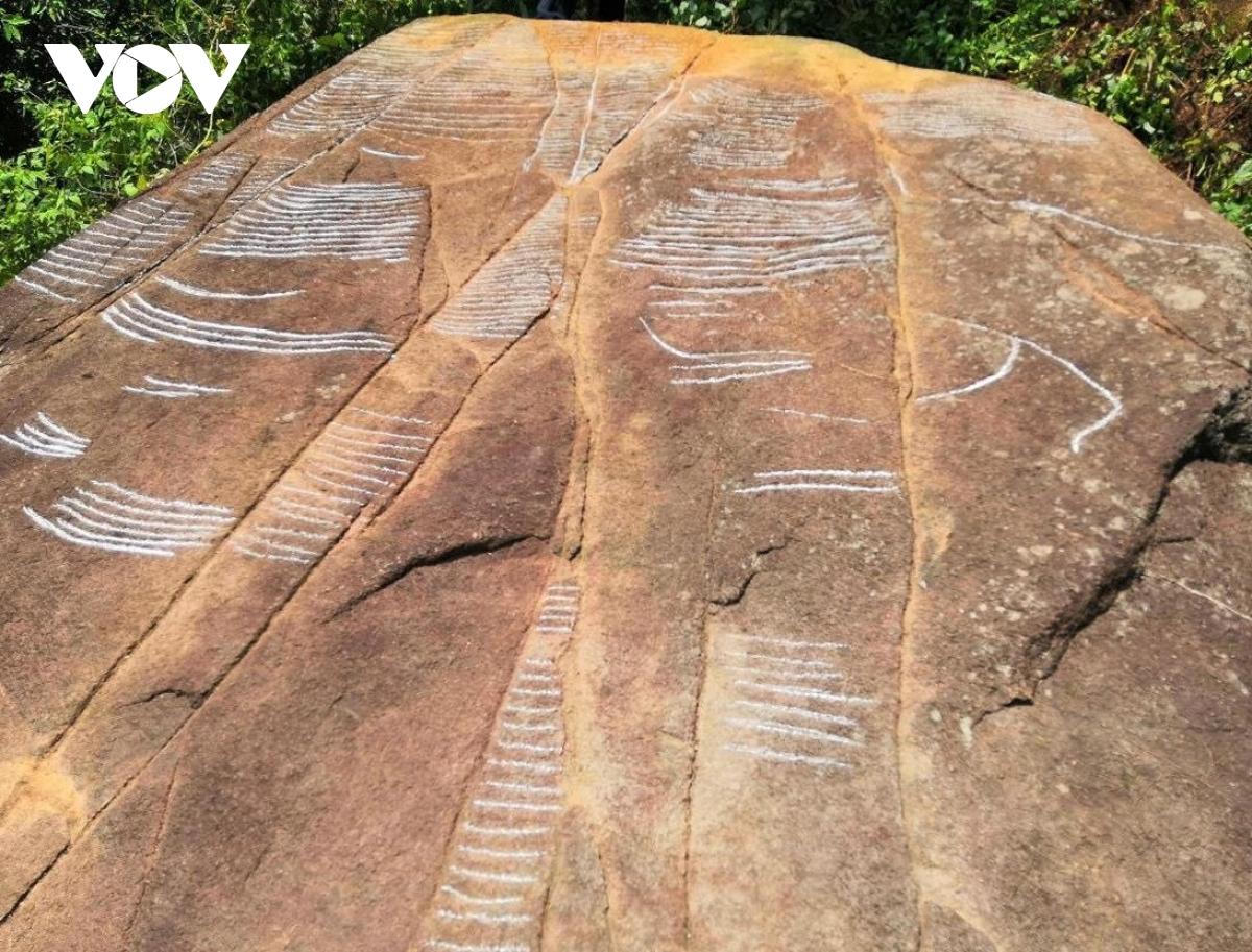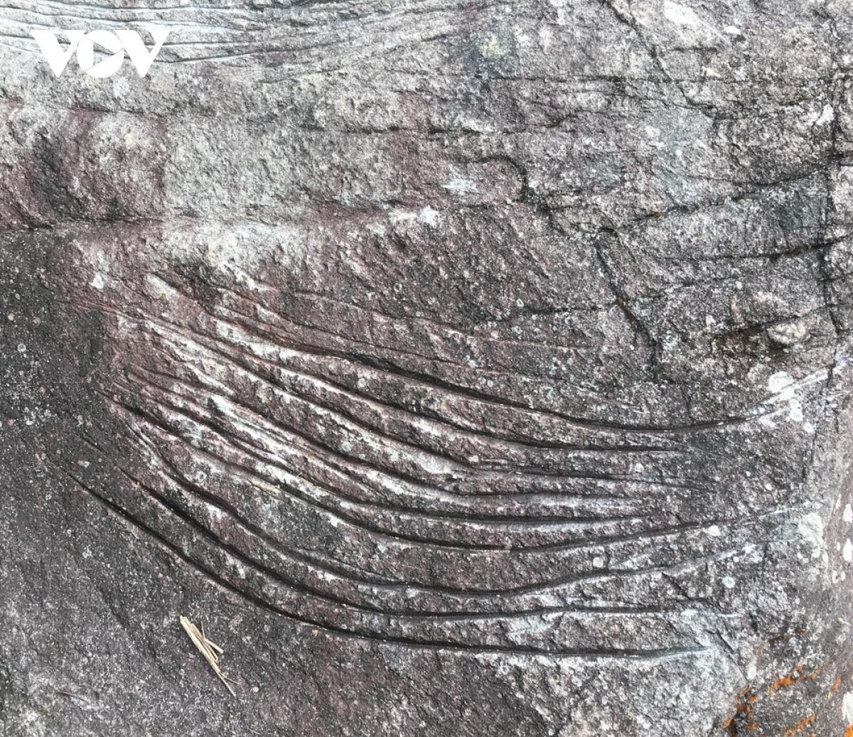 Theo nghiên cứu của Bảo tàng tỉnh Yên Bái và các cơ quan chuyên môn; các hình, vết chạm khắc trên đá nổi bật là đề tài hình ruộng bậc thang. Ngoài ra, còn có các phác họa khác như lưỡi rìu, lưỡi thanh đao, lưỡi gươm, bộ phận sinh dục phụ nữ, dao nhọn, mỏ chim… Các vết khắc còn khá rõ, nhưng cũng đủ cho thấy nó đã tồn tại từ lâu đời.