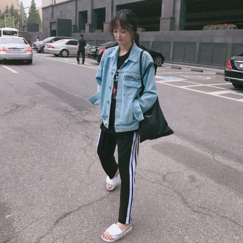 Đặc biệt, Lee Joo Yeon lựa chọn giày/dép sandal trắng làm điểm nhấn thường thấy cho bộ trang phục của mình. Mẹo nhỏ này cũng giúp các bạn kéo dài chiều cao và chiều dài đôi chân một cách đáng kể. Lee Joo Yeon cũng mạo hiểm ứng dụng xu hướng mới như tóc con hay quần track pants để làm mới phong cách cá nhân.