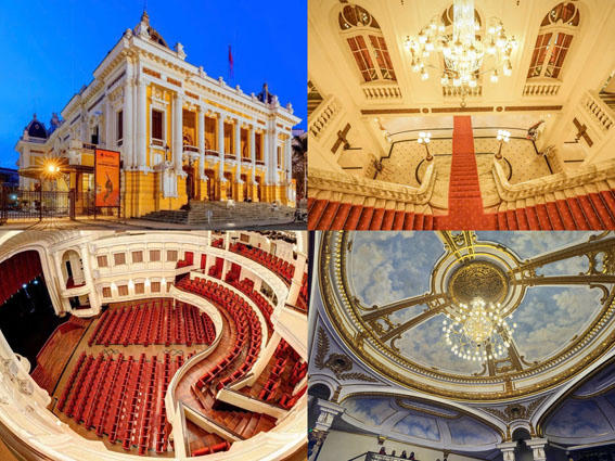 Một điểm đến khác không thể bỏ qua đối với những du khách muốn khám phá văn hóa kiến trúc của Thủ đô chính là Nhà hát Lớn Hà Nội. Tọa lạc tại Quảng trường Cách mạng Tháng Tám, hướng ra phố Tràng Tiền - khu vực sầm uất bậc nhất thành phố, Nhà hát Lớn Hà Nội có tổng diện tích khoảng 2.600 mét vuông. Công trình được khởi công xây dựng vào năm 1901 và hoàn thành vào 1911. Được thiết kế bởi các kiến trúc sư người Pháp, Nhà hát Lớn Hà Nội lấy cảm hứng từ Nhà hát Opera Paris nhưng có quy mô nhỏ hơn.