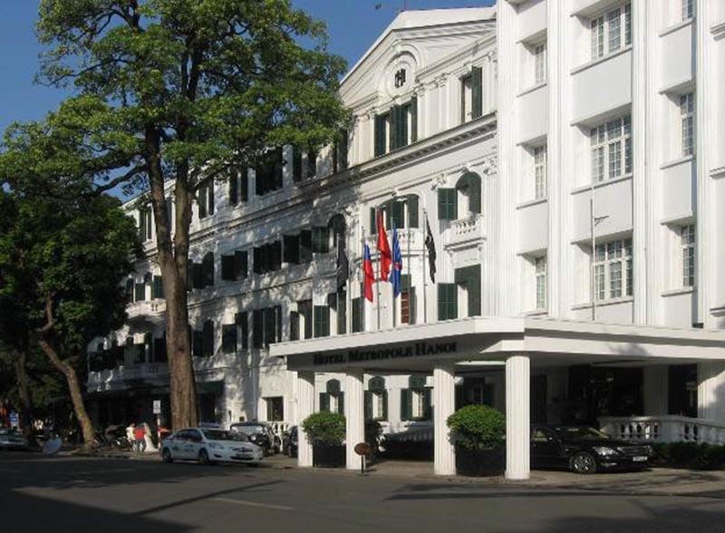 Một trong những công trình kiến trúc tiêu biểu của phong cách Indochine có thể kể đến Khách sạn Sofitel Legend Metropole. Là khách sạn 5 sao đầu tiên tại Hà Nội, Sofitel Legend Metropole hội tụ những đặc sắc của kiến trúc Đông Dương. Đó là sự hoà hợp giữa nét sang trọng của Pháp vào vẻ đẹp phương Đông qua lớp sơn tường trắng muốt, khung cửa vòm xanh có mái che,…. Thời báo phố Wall từng đánh giá, Metropole là công trình đầu tiên ở Đông Dương được xây dựng nhằm phản ánh “hình ảnh chuyển động” của một Hà Nội năng động và rực rỡ.