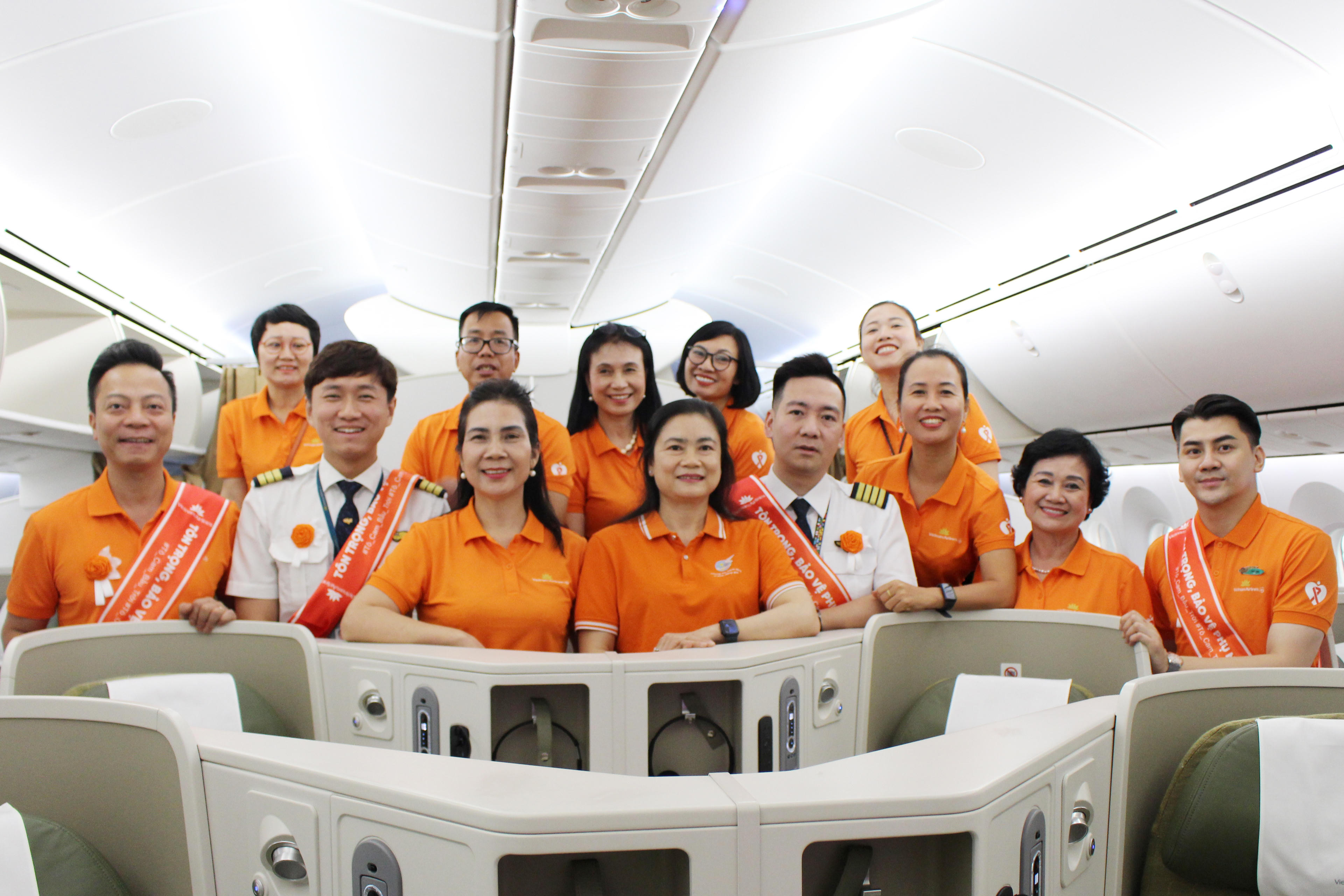 Trên chuyến bay, toàn bộ hành khách đã cùng “tô cam bầu trời” với Vietnam Airlines bằng việc mặc chiếc áo màu cam do Vietnam Airlines tặng, thể hiện cam kết hành động chấm dứt mọi hình thức bạo lực với phụ nữ và trẻ em. Hành khách trên chuyến bay cũng được đón nhận những bất ngờ thú vị màu cam là quà tặng của hãng và các đối tác đồng hành,