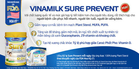 Với công thức bổ sung dinh dưỡng dễ hấp thu, cung cấp nguồn năng lượng cao (1ml = 1 kcal), đầy đủ các vitamin và khoáng chất, Vinamilk Sure Prevent là sản phẩm dinh dưỡng phù hợp cho người bệnh cần phục hồi sức khỏe, người lớn tuổi và người ăn uống kém. Với chất lượng đạt chuẩn quốc tế và giá hợp lý (414.000 đồng/hộp 900g - giá bán đã bao gồm VAT tại Cửa hàng Giới thiệu và bán sản phẩm Vinamilk), tiết kiệm hơn cho người tiêu dùng, Sure Prevent là sự lựa chọn phù hợp giúp người lớn tuổi chăm sóc sức khỏe thường xuyên và lâu dài.