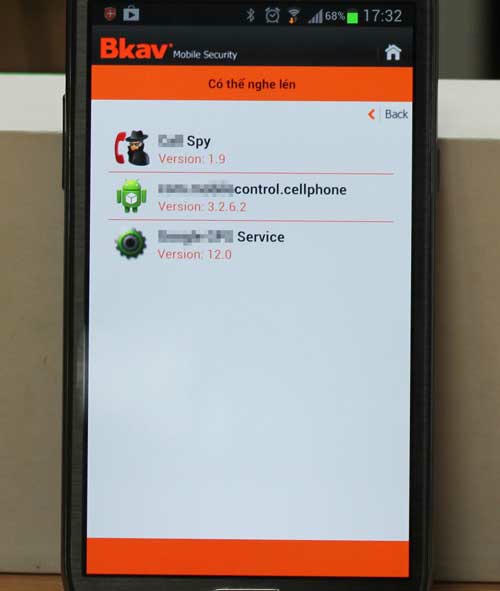 Nếu người sử dụng đã cài đặt phần mềm, Bkav Mobile Security sẽ tự động cập nhật phiên bản mới nhất để bảo vệ. Để quét và kiểm tra các phần mềm nghe lén, người sử dụng chỉ cần truy cập vào mục Giám sát truy cập trên phần mềm Bkav và bấm nút Quét. Bkav Mobile Security sẽ quét toàn bộ điện thoại và chỉ ra các phần mềm nghe lén để loại bỏ.