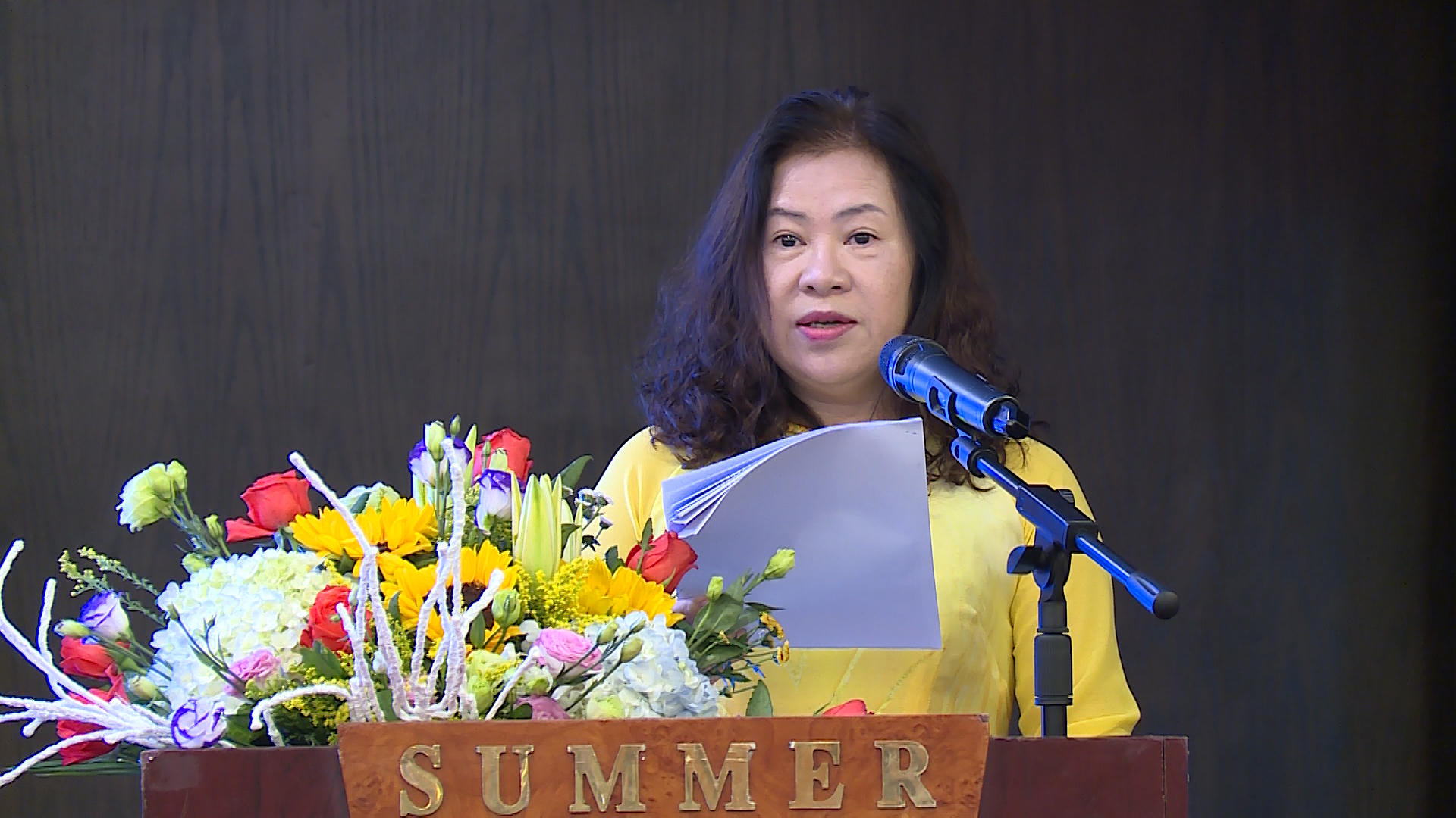 Phó Chánh án TANDTC Nguyễn Thúy Hiền trình bày báo cáo tại Hội nghị