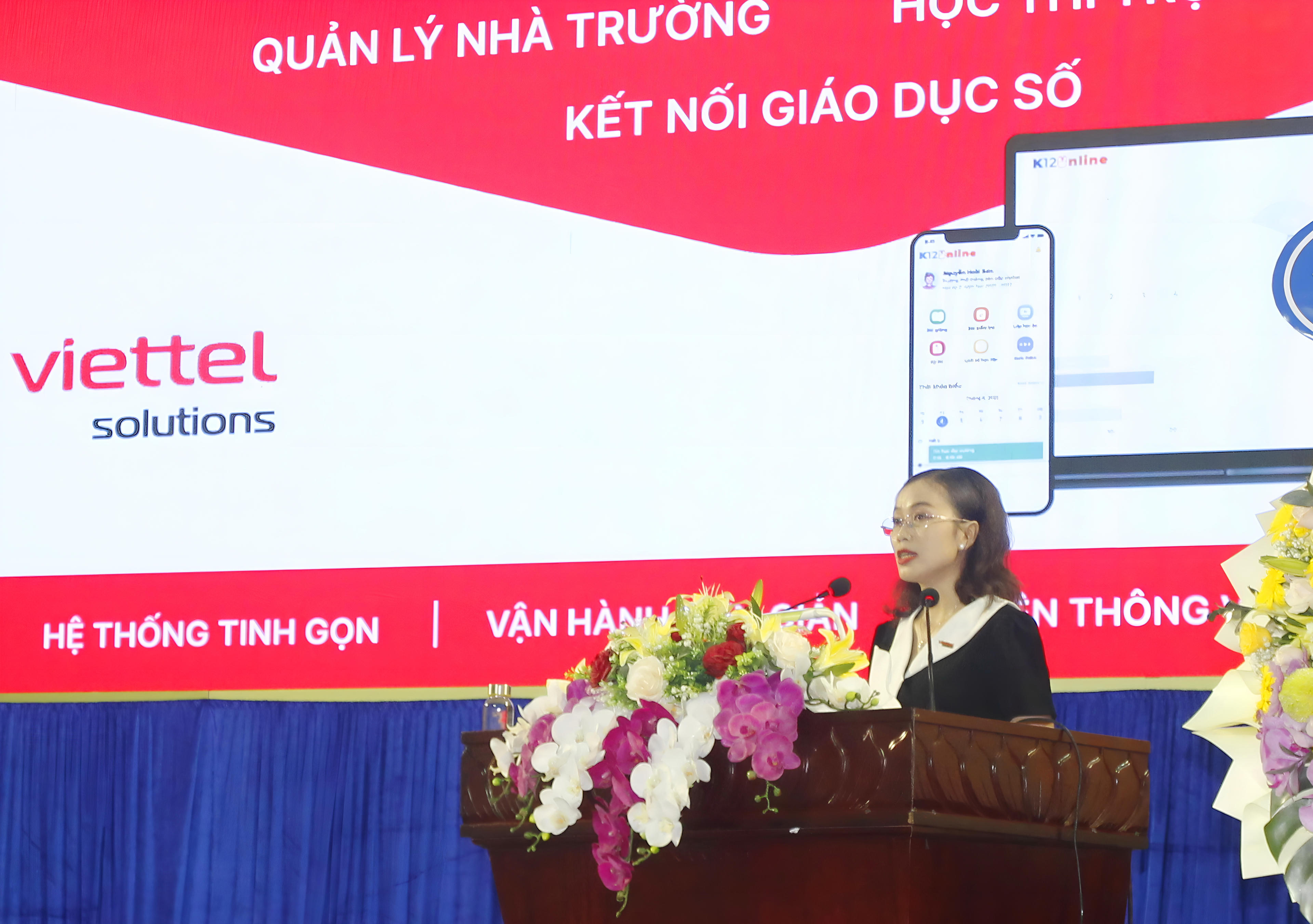 Bà Lâm Thị Mũi cho biết thêm, mục tiêu giải pháp Trường học số K12Online giúp các cơ sở giáo dục đạt chuyển đổi số mức độ 3 đáp ứng Quyết định 4725 của Bộ giáo dục. Đồng thời, có một số tính năng nổi bật của Trường học số K12Online bao gồm: Cung cấp công cụ để cấp quản lý theo dõi đánh giá thực hiện Chuyển đổi số tại cơ sở giáo dục theo Quyết định 4725; kho học liệu số tổng thể ngành sở xuống phòng trường, kết nối thư viện số, tiện lợi cho giáo viên chia sẻ và học sinh khai thác; xây dựng mẫu kho học liệu môn Tiếng Anh theo từng bộ sách theo Khung Chương trình Giáo dục phổ thông 2018. Đặc biệt, đảm bảo kiểm tra và xây dựng lộ trình học tập theo năng lực từng học sinh. Qua đó, đáp ứng yêu cầu về hệ thống khảo thí, trộn đề theo mẫu đề mới THPT2025, kiểm tra đánh giá theo mẫu đề mới, in và chấm scan tự động.