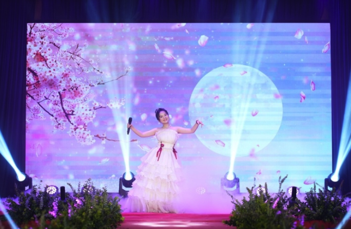 Đến từ thủ đô Hà Nội, thí sinh Đàm Thủy Tiên tinh tế với trang phục của nhà thiết kế Lý Quý Khánh trong tiết mục ca hát kết hợp vũ đạo sôi động "Bống bống bang bang".