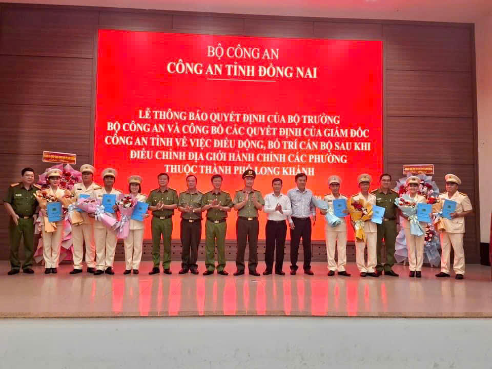 Công an tỉnh Đồng Nai mới tổ chức Thông báo Quyết định của Bộ trưởng Bộ Công an và công bố các Quyết định của Giám đốc Công an tỉnh về việc điều động và bố trí cán bộ sau khi điều chỉnh địa giới hành chính các xã, phường thuộc địa bàn TP Biên Hoà, TP Long Khánh, huyện Tân Phú, huyện Vĩnh Cửu theo Nghị quyết 1194/NQ-UBTVQH15 của Uỷ ban Thường vụ Quốc hội.