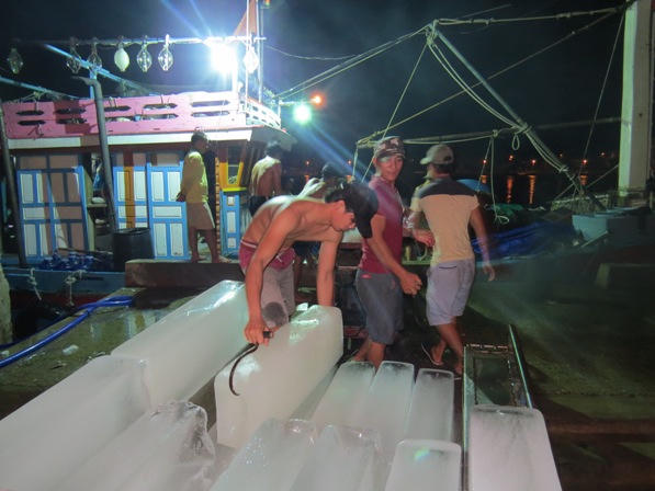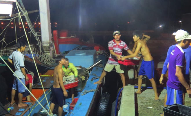 Tàu BĐ 94177 TS do gia đình thuyền trưởng Hoàng vay mượn mua được cách đây gần 3 tháng, đây chỉ mới là chuyến ra khơi thứ 3 và lần đầu tiên cập bờ nhập cá ở Quảng Bình.