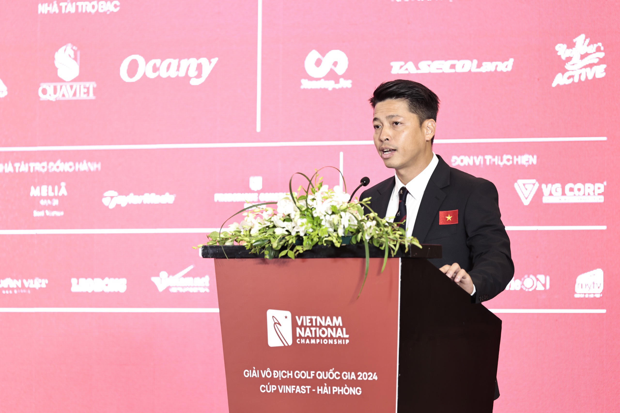 Ông Nguyễn Thái Dương - Phó Tổng Thư ký Hiệp Hội Golf Việt Nam, Giám đốc Giải Vô địch Golf Quốc gia 2024 phát biểu tại cuộc họp báo. |