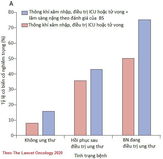 Người bệnh ung thư đang hoặc vừa được điều trị phẫu thuật hay hóa chất, khi nhiễm Covid-19 có nguy cơ gặp biến cố lâm sàng nặng (cần điều trị ICU - Hồi sức tích cực hoặc tử vong) cao hơn so với người không ung thư.