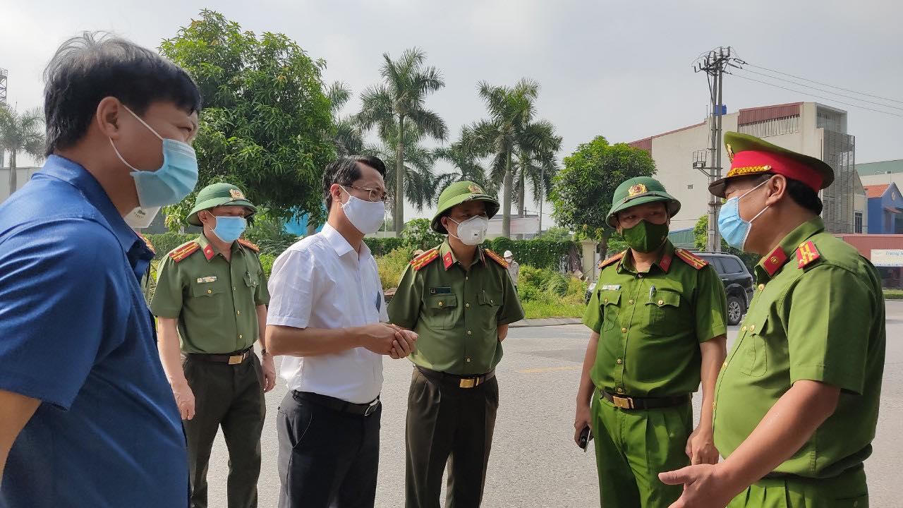 Giám đốc Công an tỉnh Hải Dương trực tiếp đi kiểm tra các chốt kiểm soát dịch trên địa bàn tỉnh. |