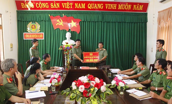 Tại trụ sở công an huyện A Lưới, Giám đốc Công an tỉnh Thừa Thiên Huế đã trao 100 triệu đồng cho Trung tá Hồ Văn Sơn, Đội phó Đội an ninh Công an huyện A Lưới. Số tiền này được trích từ quỹ nghĩa tình đồng đội - Bộ Công an.