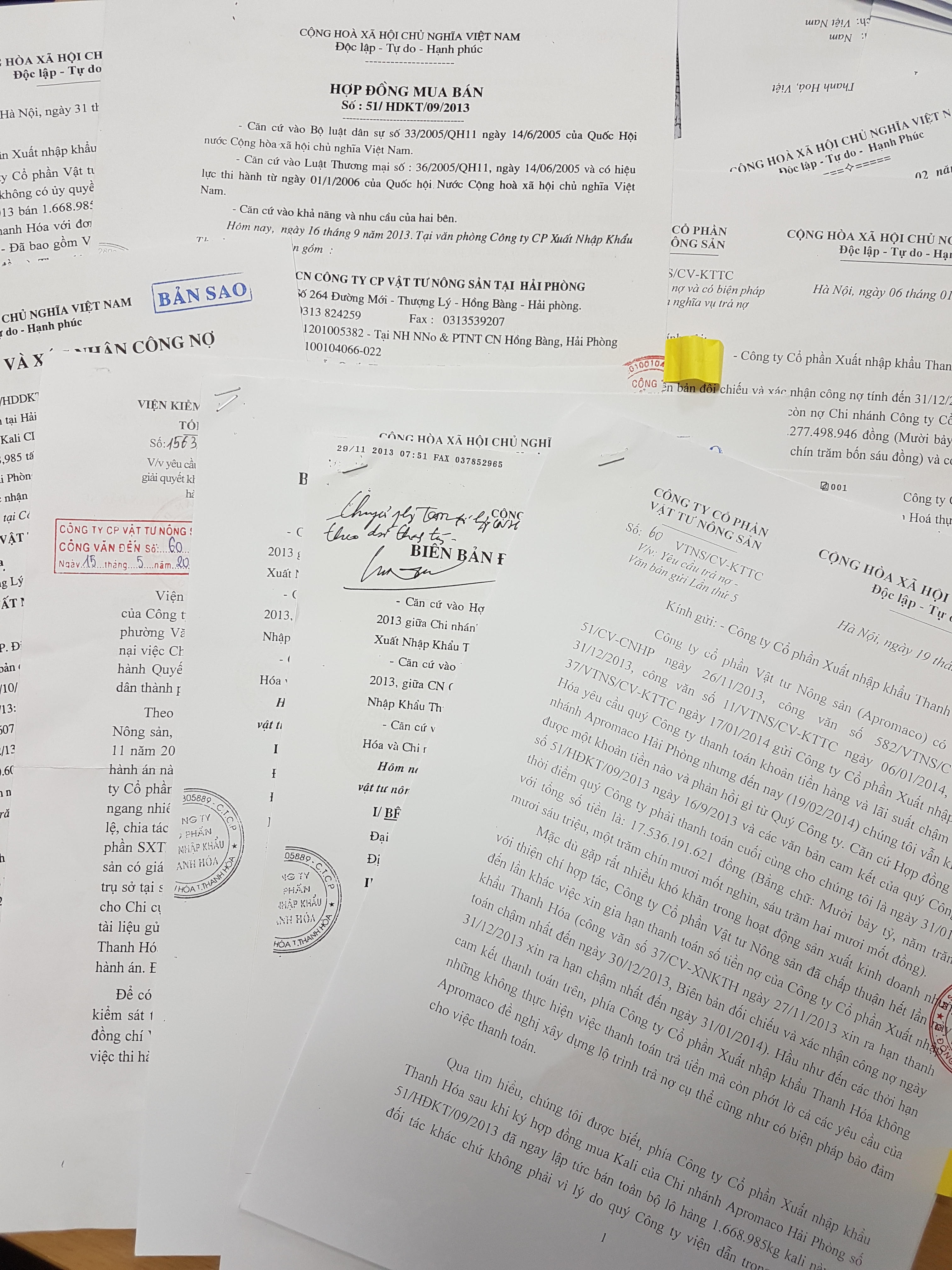 (PLO) - Tháng 9/2013, Công ty Cổ phần XNK Thanh Hóa do ông Lê Văn Long làm giám đốc ký hợp đồng mua lô hàng phân bón trị giá trên 16,6 tỷ đồng của Công ty Cổ phần Vật tư Nông sản. Theo Hợp đồng, sau khi hàng hóa được bàn giao đầy đủ, trong vòng một tháng, Công ty Cổ phần XNK Thanh Hóa phải thanh toán hết số tiền hàng cho Công ty Cổ phần Vật tư Nông sản. Thế nhưng, hàng đã trao, thậm chí đã bán hết từ mấy năm nay, Công ty Cổ phần XNK Thanh Hóa vẫn cố tình chây ì không trả nợ cho Công ty Cổ phần Vật tư Nông sản.
