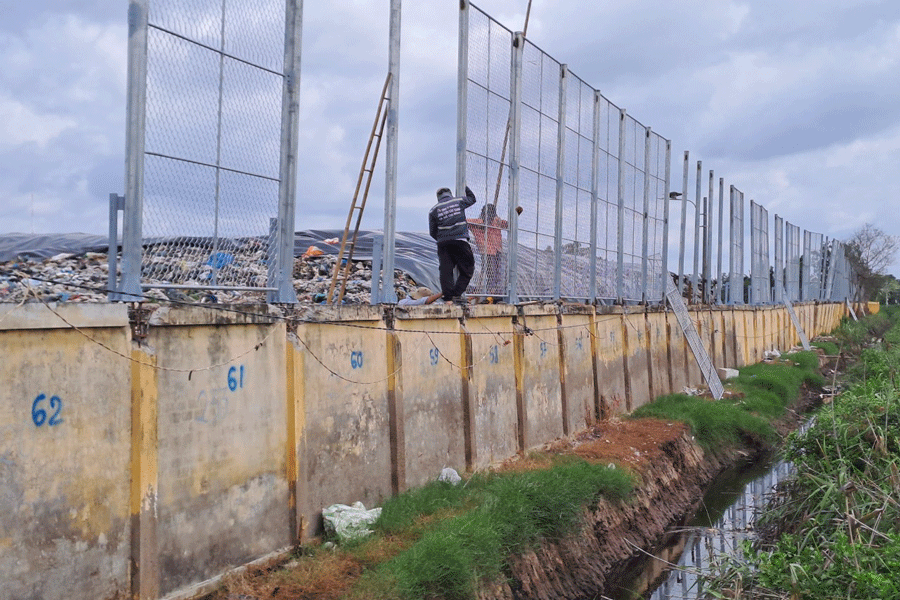 Về cải tạo ao sinh học (diện tích 2.800m2) để lưu chứa nước rỉ rác, đã đạt tiến độ trên 85% khối lượng công việc. Hiện nay, nước rỉ rác thường xuyên được bơm và dẫn dòng vào ao sinh học trong khuôn viên bãi rác, không để nước rỉ rác chảy tràn ra môi trường bên ngoài. Đồng thời, việc nâng cấp xây dựng tường rào bằng B40 để chắn rác phát tán (bay) ra xung quanh cũng đã đạt 81% khối lượng công việc, đã lắp xong lưới B40 đoạn hơn 280m/344m.