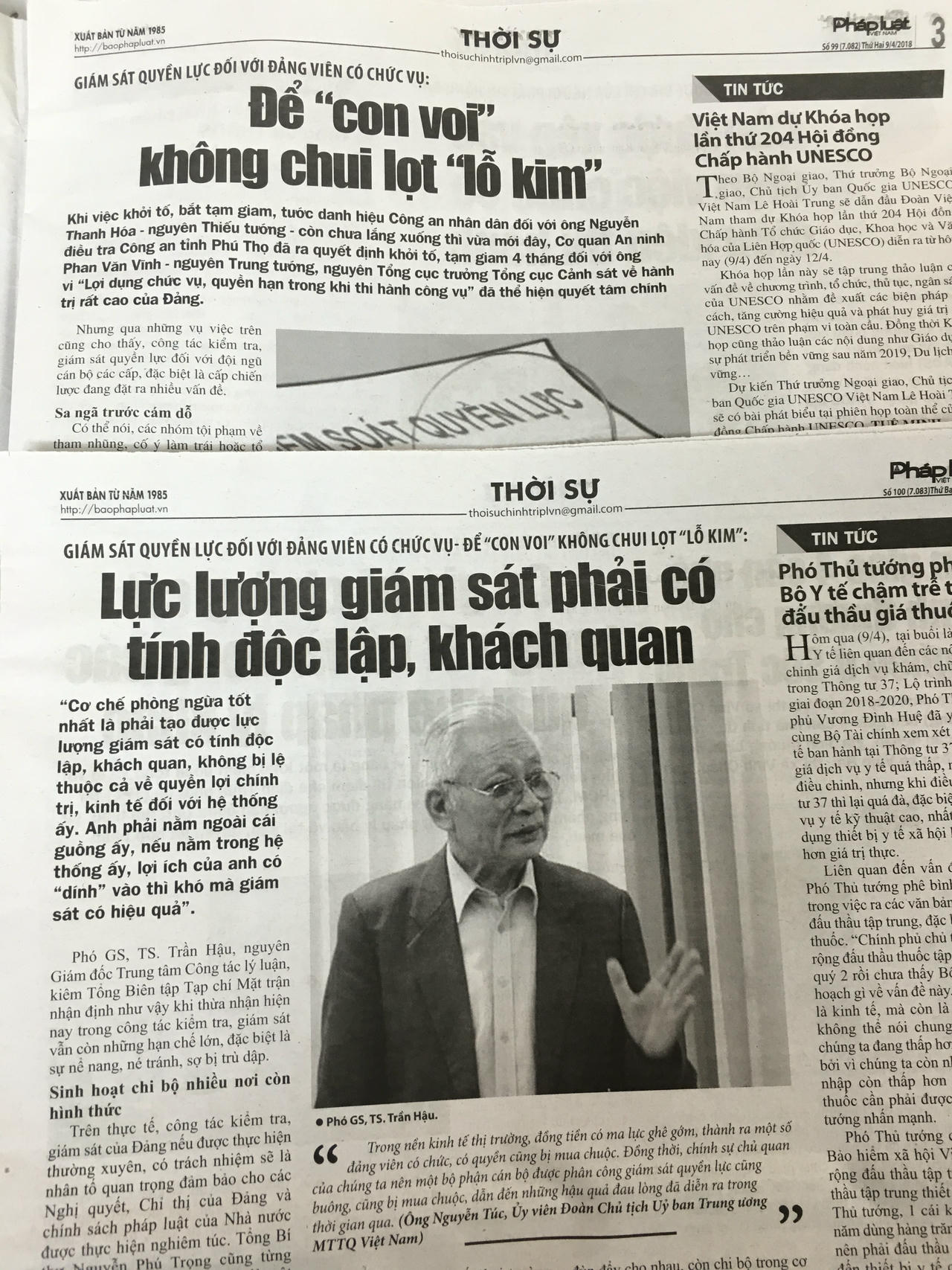 | Loạt bài “Giám sát quyền lực đối với đảng viên có chức vụ - Để con voi không chui lọt lỗ kim” trên báo PLVN. |